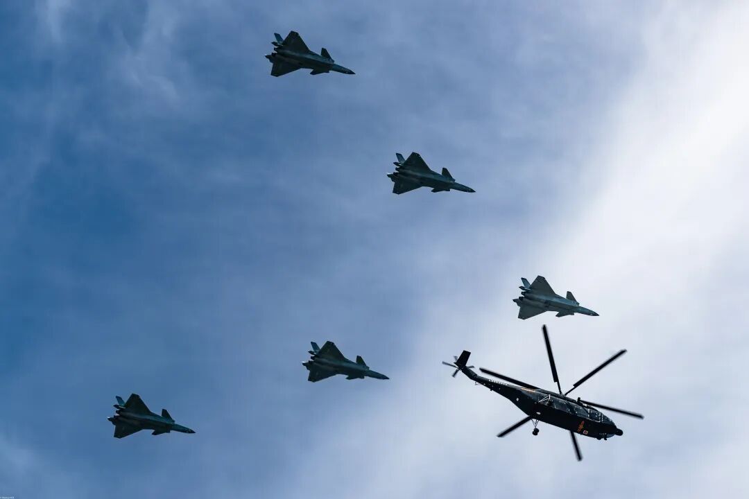 2019年新中国成立70周年阅兵中的歼20编队。岳书华摄