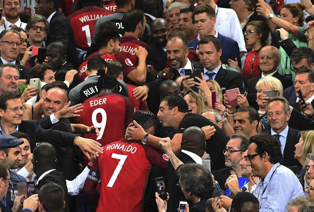 2016年7月11日欧洲杯决赛颁奖仪式上,夺冠后的C罗成为球迷追捧的对象。