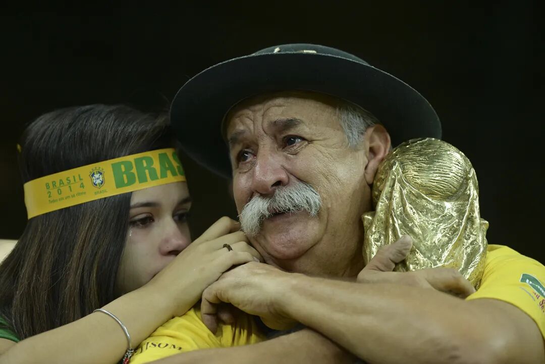 2014年巴西世界杯上,巴西队以1:7负于德国队,看台上著名的球迷爷爷费尔南德斯难过地留下了眼泪。