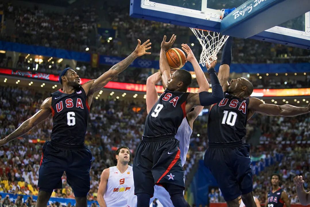 《奢华防线》2008年8月24日,在北京奥运会男子篮球决赛中,美国队三位身价最高的球队球员詹姆斯、韦德、科比联手封盖上篮的西班牙球员。最终美国队得冠军。