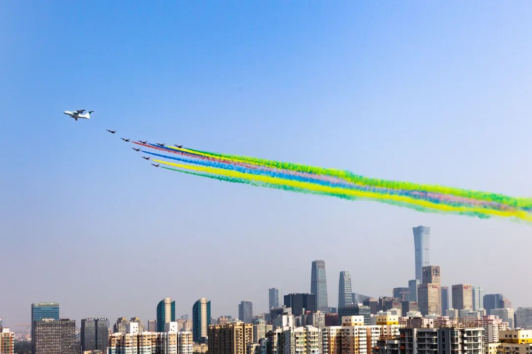 看着今年的空中梯队,再想想1949年开国大典时因为飞机数量不够,17架参阅飞机还飞了两遍。今天,我们的飞机有的是!(岳书华)