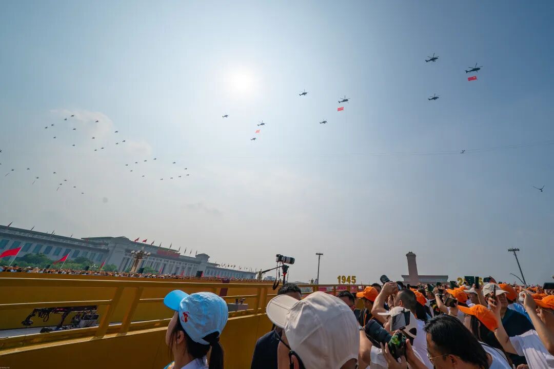 2025年9月3日,在纪念中国人民抗日战争暨世界反法西斯战争胜利80周年阅兵式的北京天安门现场,在仅限的固定空间内忙碌——这是我从事摄影记者工作的第十一个年头,也是中国航空报社自1986年成立以来,首次可以派出记者参与阅兵活动的天安门现场报道。