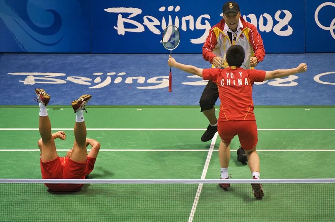《喜跃抃舞》2008年8月15日,在北京奥运会女子双打决赛中,中国选手于洋/杜婧战胜韩国选手李敬元/李孝贞夺得冠军。中国羽毛球成功地在奥运会女双比赛中实现四连冠。